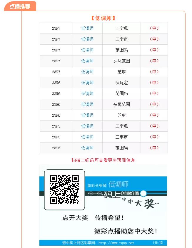 【点播推荐】2398期推荐“低调师”“龙哥”“彩神大师”三位大师