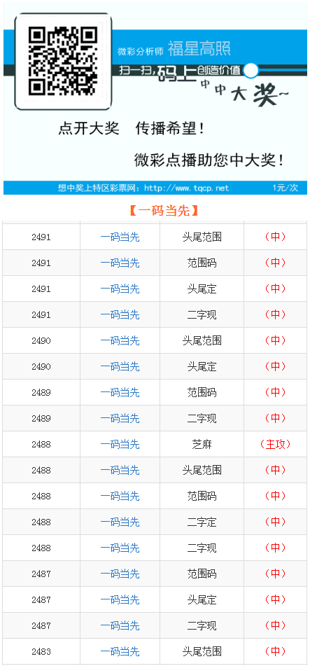 【点播推荐】2495期推荐“期期好码“福星高照”“一码当先”3位分析师