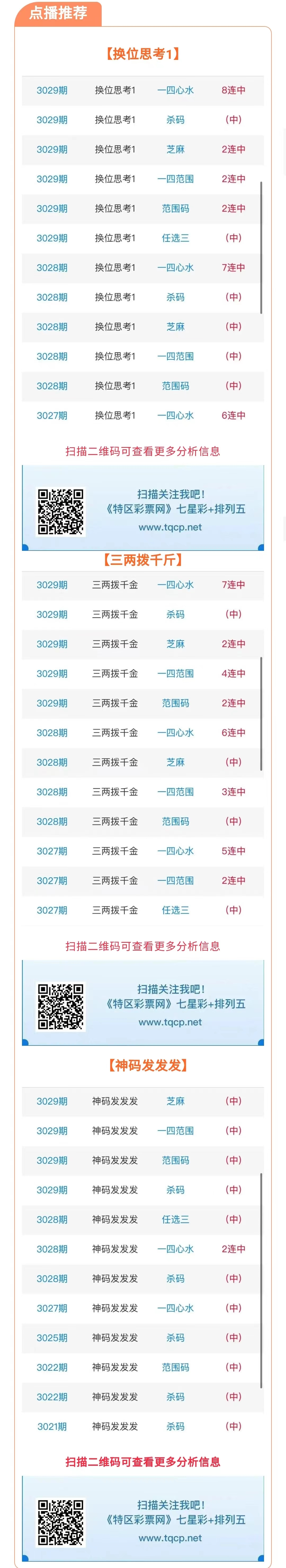 七星彩3030期点播推荐换位思考1、三两拨千金和神码发发发 3位分析师