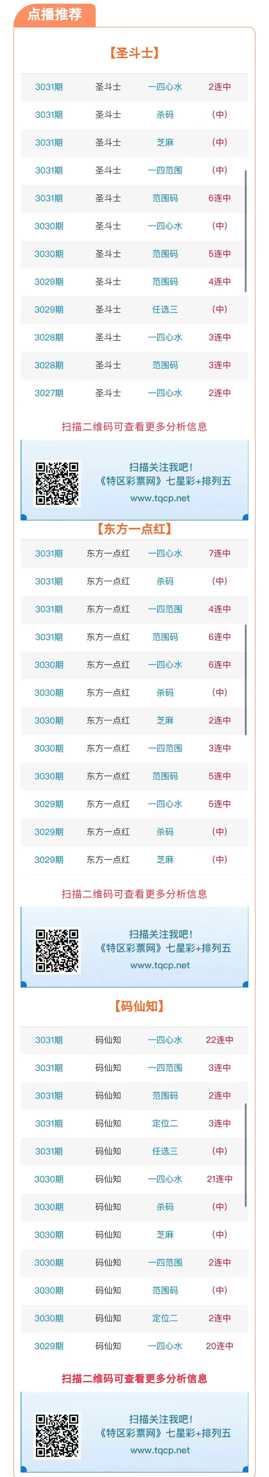 七星彩3032期点播推荐圣斗士、东方一点红和码仙知 3位分析师