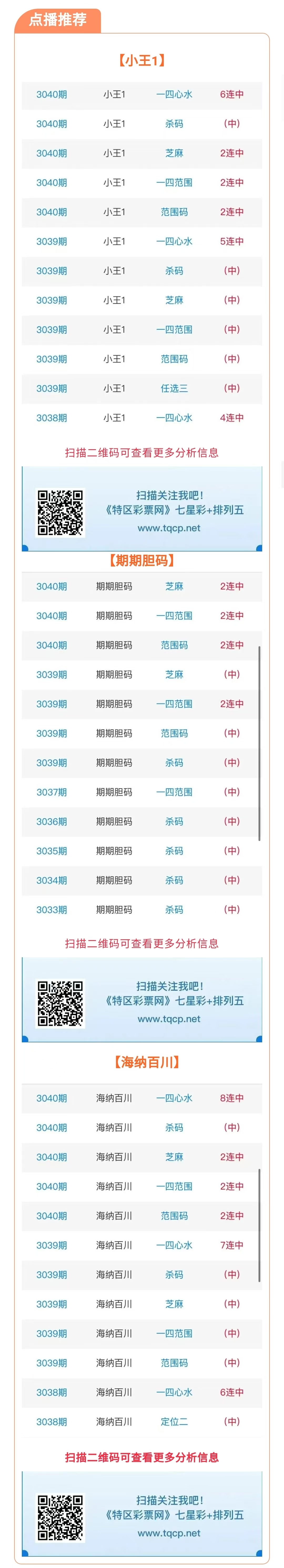 七星彩3041期点播推荐小王1、期期胆码和海纳百川 3位分析师