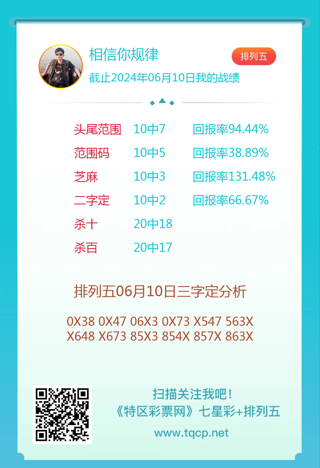 排列五24153期点播推荐福禄双全、A特法师和相信你规律3位分析师