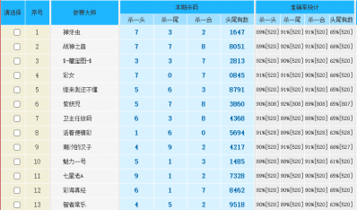 • 七星彩3277期特区杀三头三尾统计