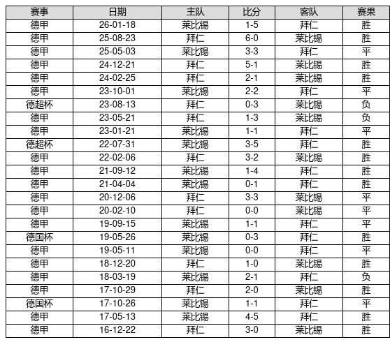 拜仁 VS 莱比锡两队近10年的交战次数为24场,拜仁13胜8平3负,赢球概率为54.2%,平局概率为33.3%,输球概率为12.5%。
