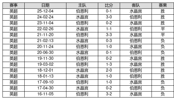 水晶宫 VS 伯恩利两队近10年的交战次数为15场,水晶宫7胜2平6负,赢球概率为46.7%,平局概率为13.3%,输球概率为40.0%。