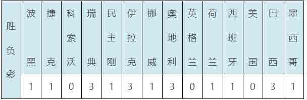 其余比赛,世欧预附加赛,土耳其、瑞典、伊拉克均战胜各自对手晋级世界杯;友谊赛方面,奥地利1-0小胜韩国,美国0-2负于葡萄牙,巴西3-1轻取克罗地亚。