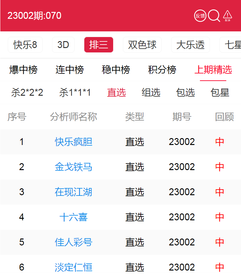23003期:快乐疯胆、金戈铁马 等9位老师10注直选击中大奖!