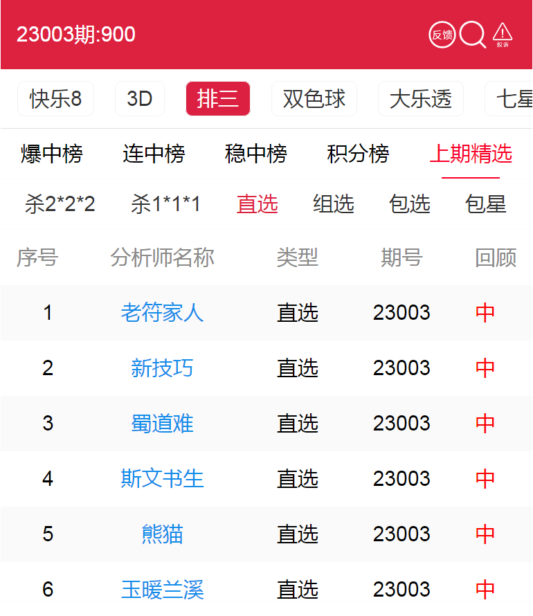 23004期:老符家人、新技巧 等12位老师10注直选击中大奖!