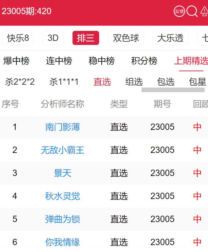 23006期:南门影薄、无敌小霸王 等多位老师10注直选击中大奖!