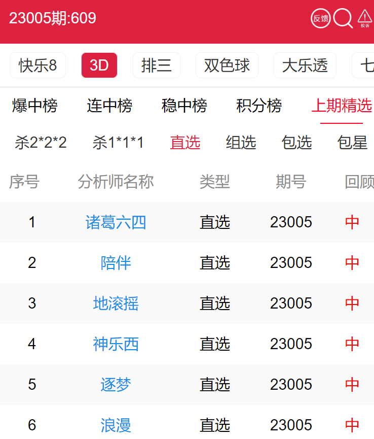 23006期:福彩3D 诸葛六四、陪伴 等多位老师命中直选!