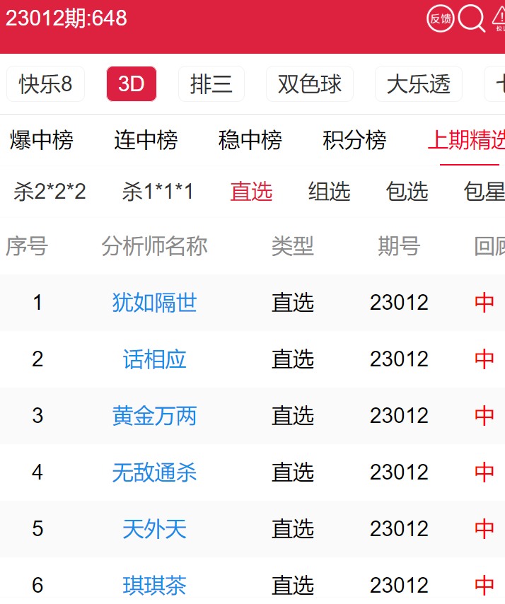23013期:福彩3D 犹如隔世、话相应 等多位老师命中直选!