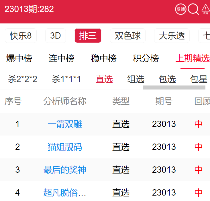 23014期:一箭双雕、猫姐靓码等多位老师10注直选击中大奖!
