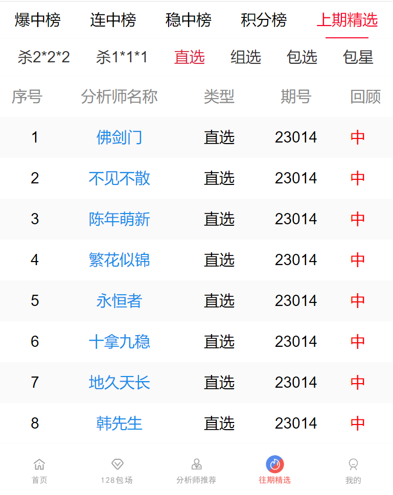 23015期:佛剑门、不见不散 等8位老师10注直选击中大奖!