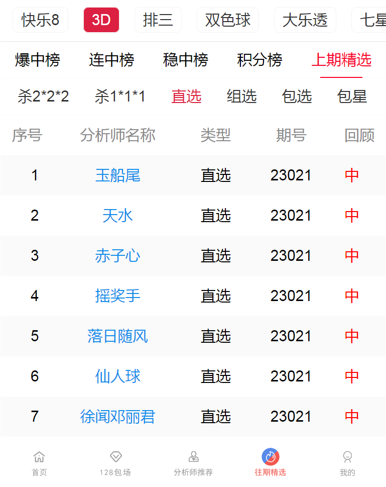 23022期:福彩3D 玉船尾、天水 等多位老师命中直选!