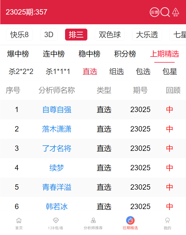 23026期:自尊自强、落木潇潇 等多位老师10注直选击中大奖!