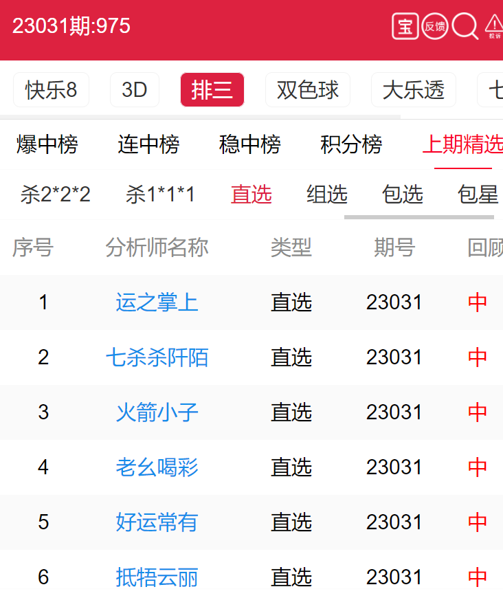 23032期:运之掌上、七杀杀阡陌 等多位老师10注直选击中大奖!