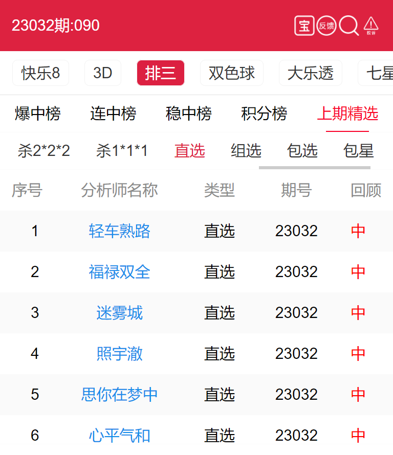 23033期:轻车熟路、福禄双全 等10位老师10注直选击中大奖!