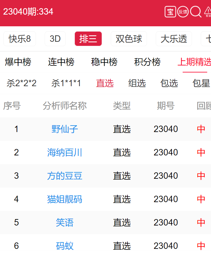 23041期:野仙子、海纳百川 等多位老师10注直选击中大奖!