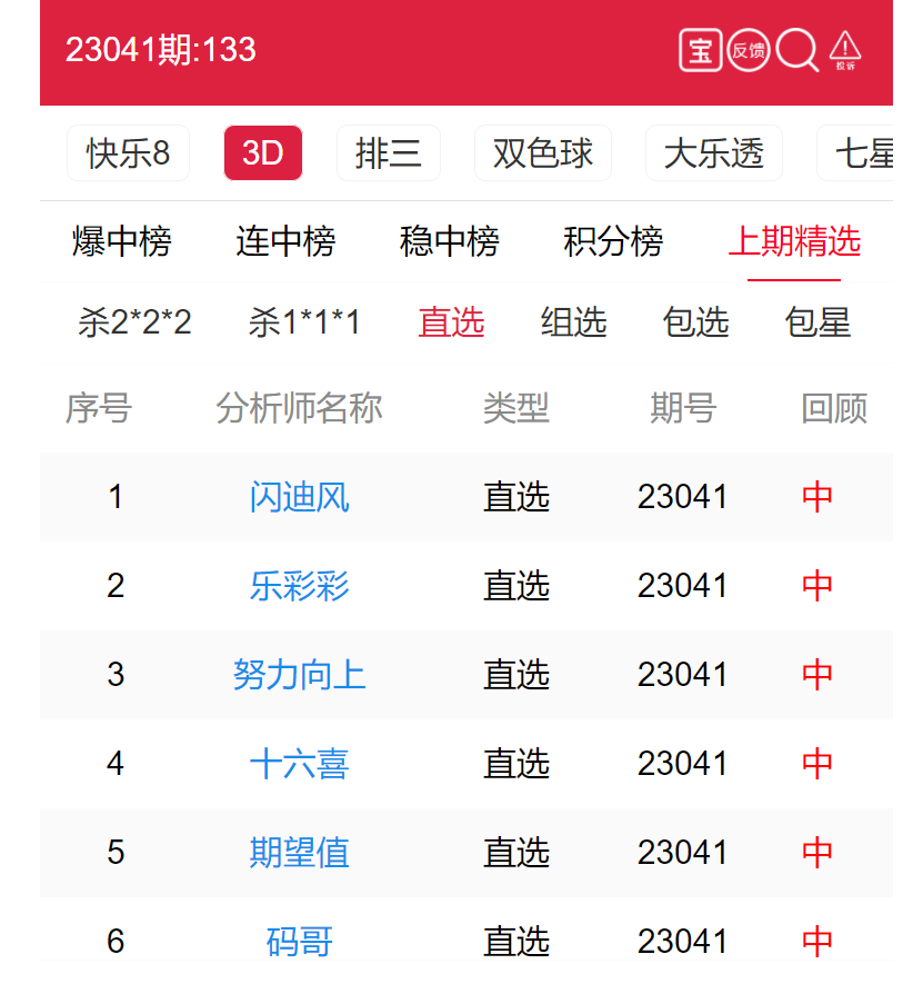 23042期:福彩3D 闪迪风、乐彩彩 等多位老师命中直选!