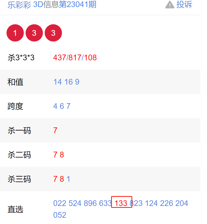 福彩3D上期开奖号码:133【更多福利彩票开奖链接:https://www.weicainet.cn/】