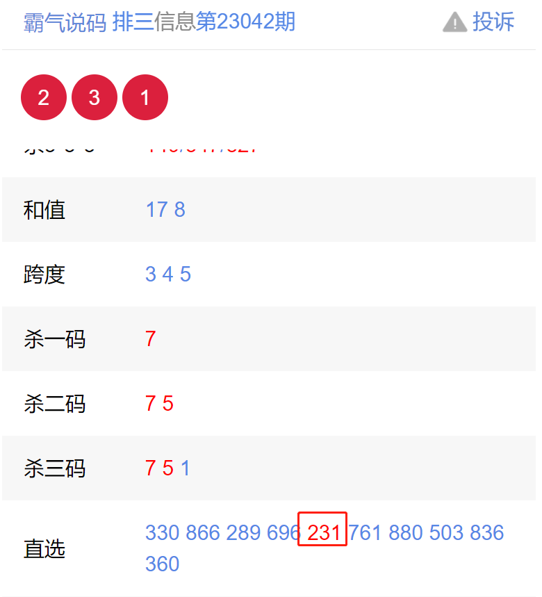 排列三上期开奖号码:231【更多体育彩票开奖链接:https://www.weicainet.cn/】
