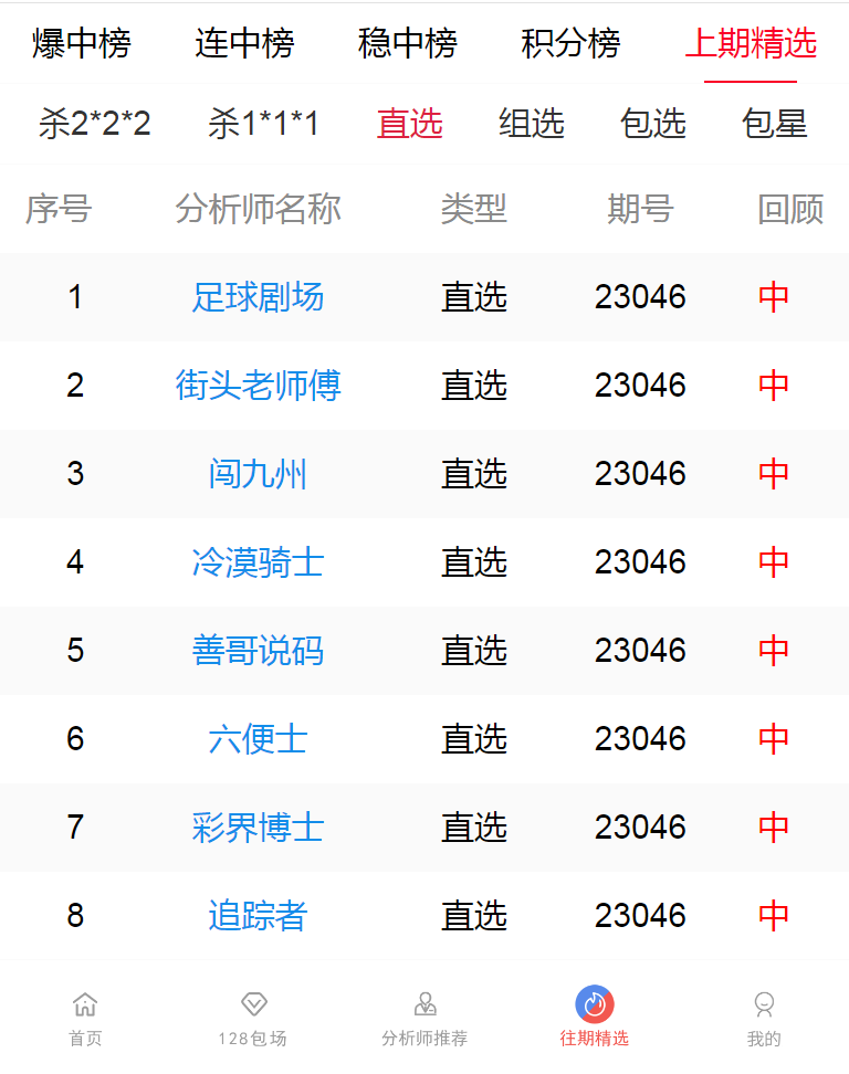 23047期:街头老师傅、足球剧场 等多位老师10注直选击中大奖!