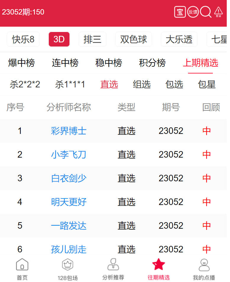 23053期:福彩3D 彩界博士、小李飞刀 等10位老师命中直选!
