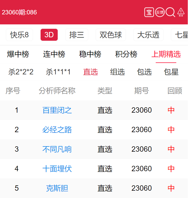 23061期:福彩3D 必经之路、不同凡响 等12位老师命中直选!