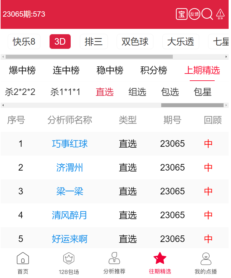 23066期:福彩3D 巧事红球、济渭州 等12位老师命中直选!
