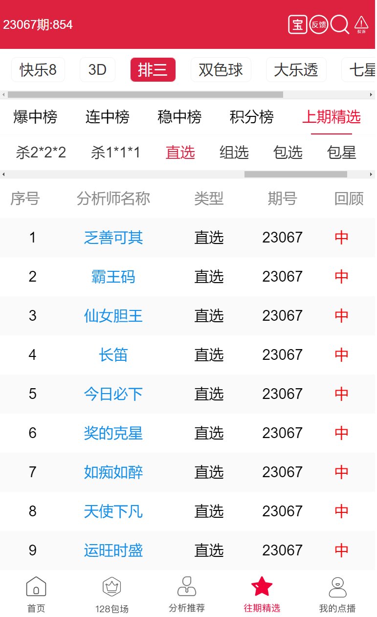 23068期:乏善可其、霸王码 等9位老师直选击中大奖!