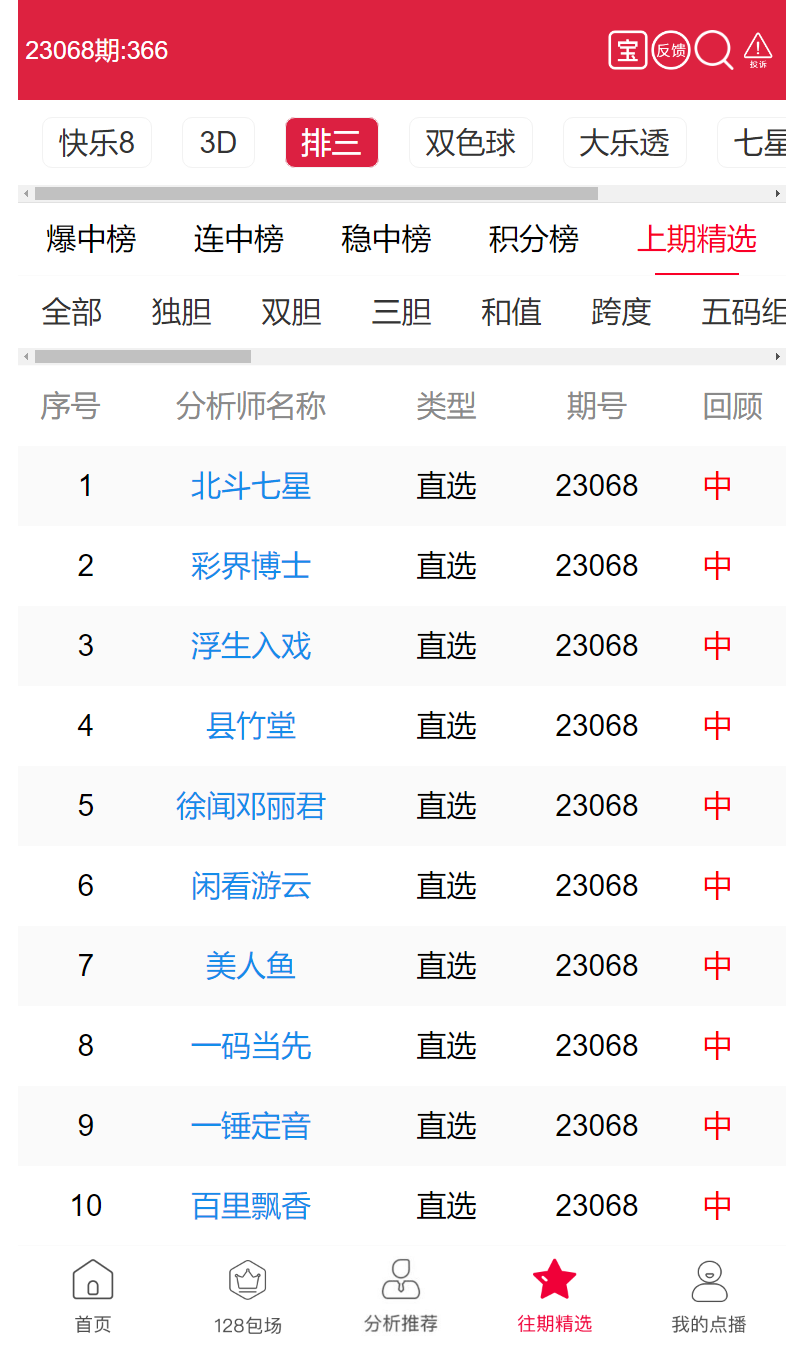 23069期:北斗七星、彩界博士 等10位老师直选击中大奖!
