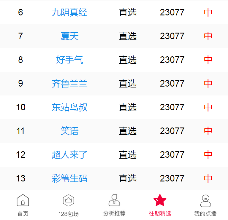 23078期:夜雨听风、琼山彩哥 等13位老师直选击中大奖!