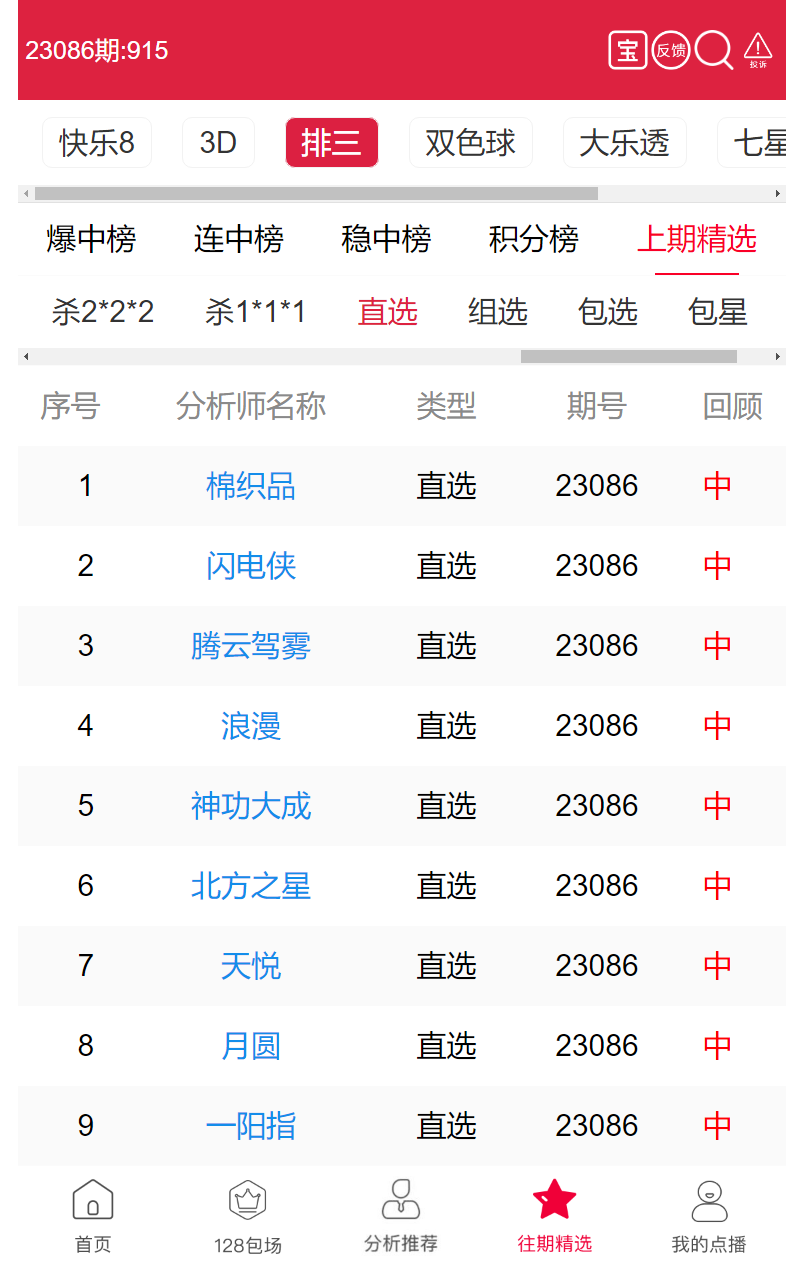 23087期:棉织品、闪电侠 等9位老师直选击中大奖!