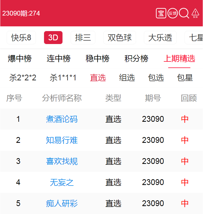 23091期:福彩3D 煮酒论码、知易行难 等11位老师命中直选!