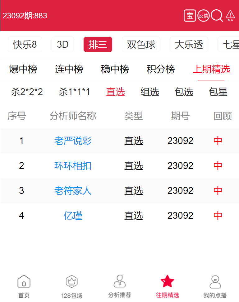 23093期:老严说彩、环环相扣 等多位老师直选击中大奖!