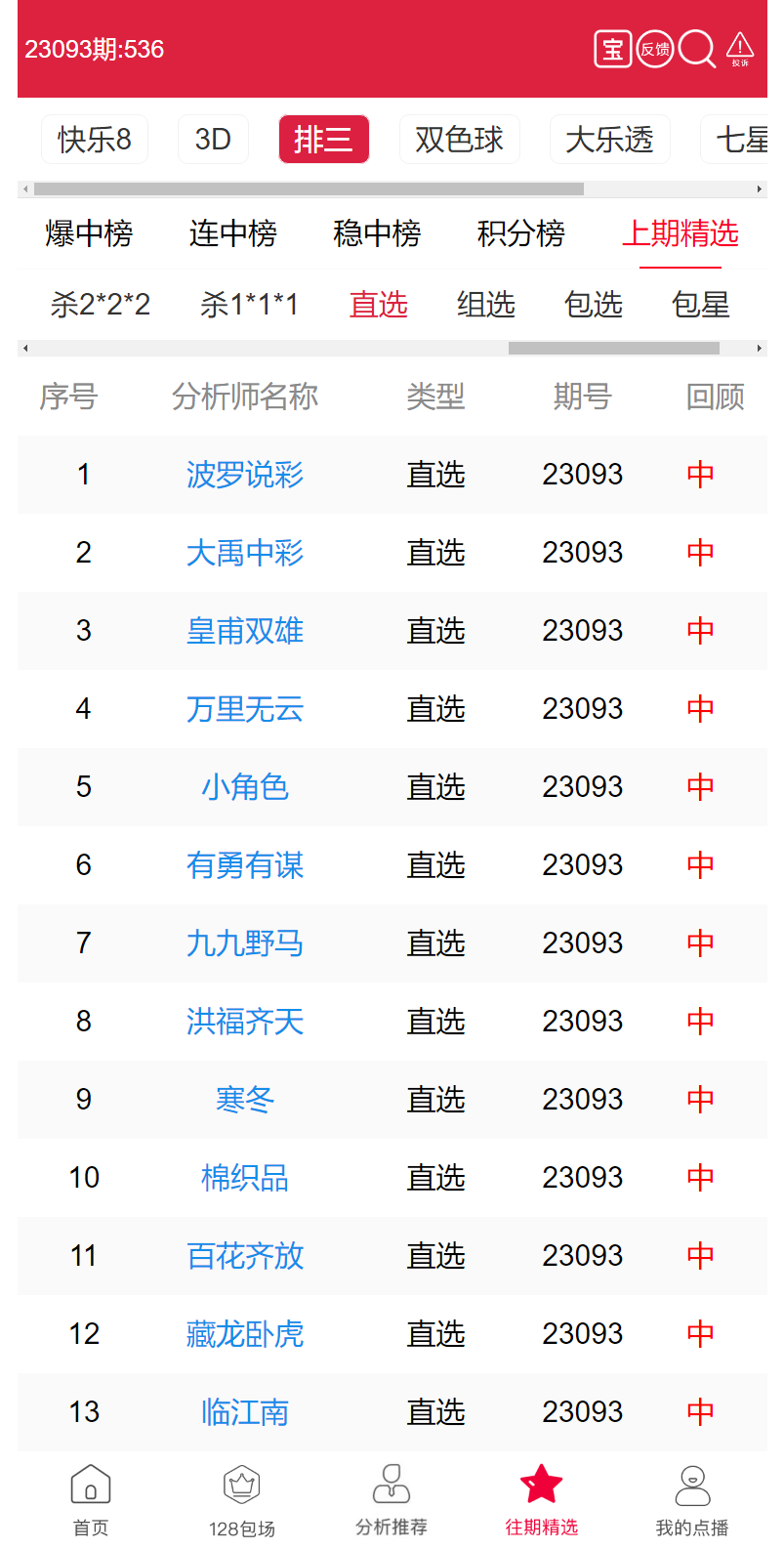 23094期:波罗说彩、皇甫双雄 等13位老师直选击中大奖!