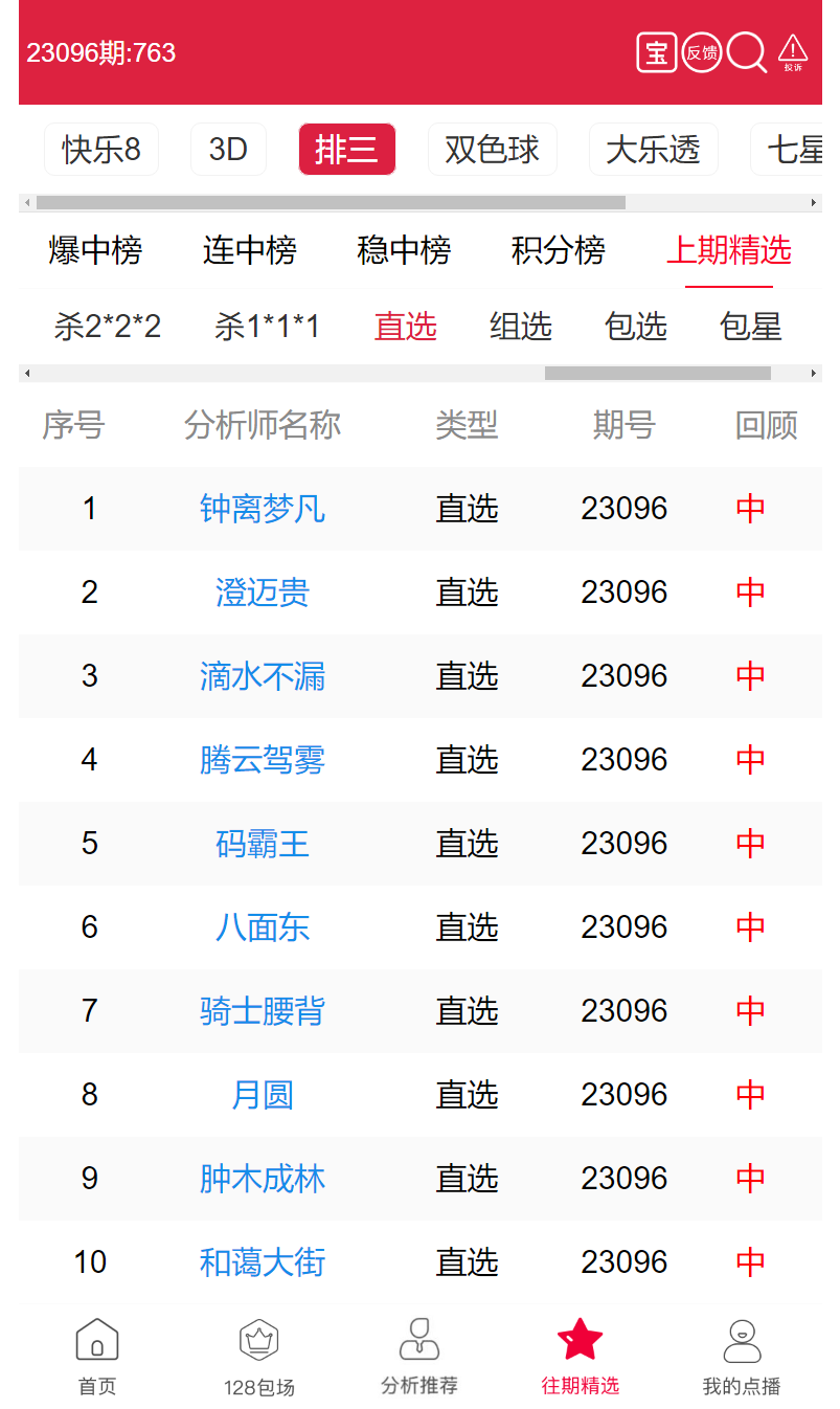 23097期:钟离梦凡、澄迈贵 等10位老师直选击中大奖!