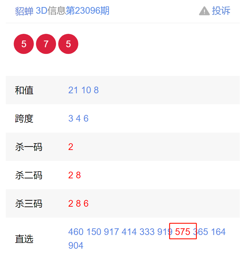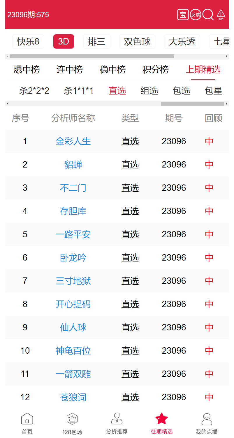 23097期:福彩3D 金彩人生、貂蝉 等12位老师命中直选!