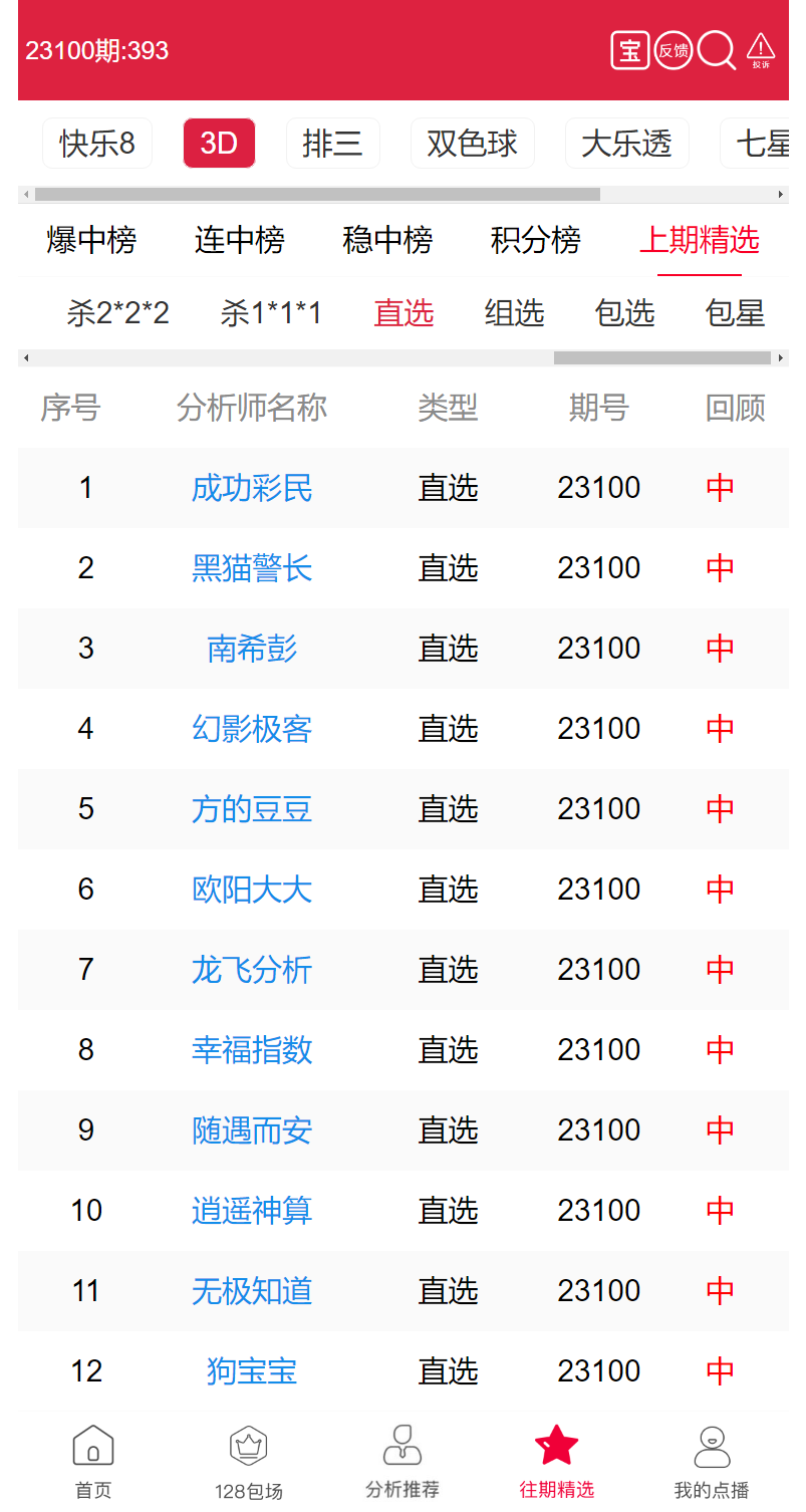 23101期:福彩3D 成功彩民、黑猫警长 等12位老师命中直选!