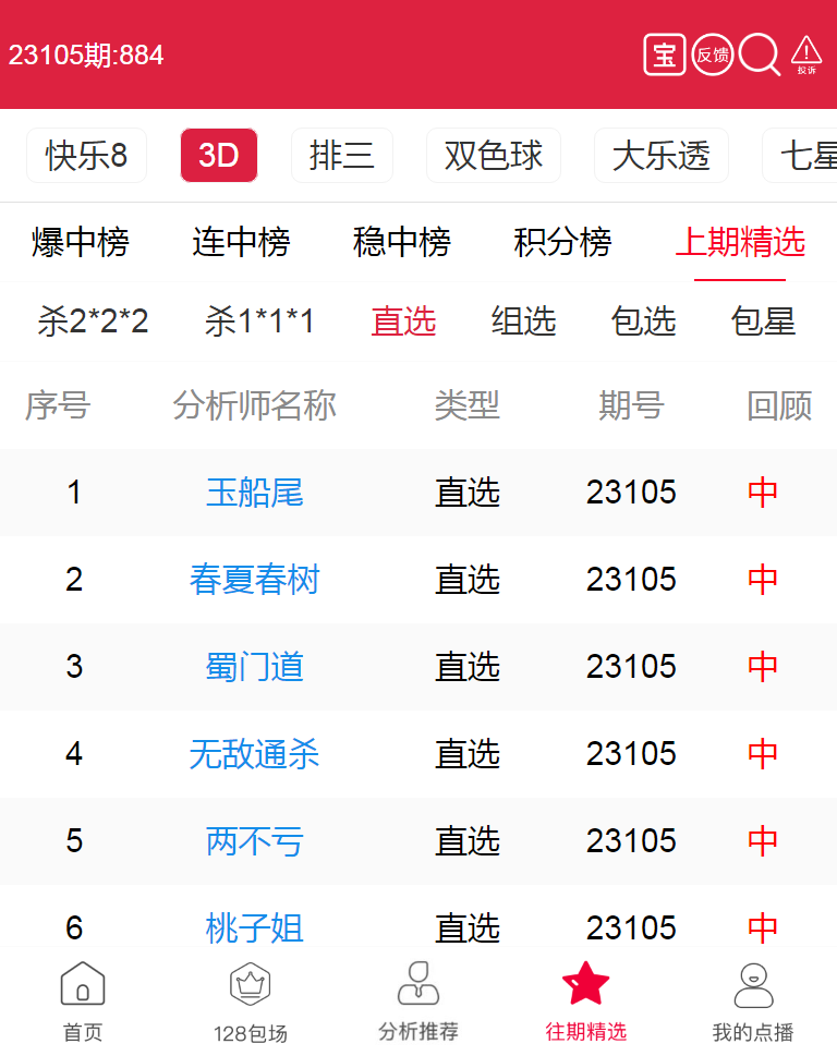 23106期:福彩3D 玉船尾、春夏春树 等多位老师命中直选!