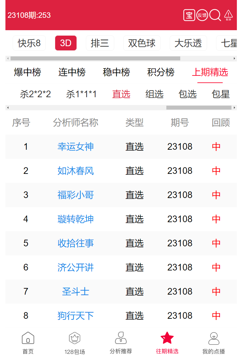 23109期:福彩3D 幸运女神、如沐春风 等8位老师命中直选!