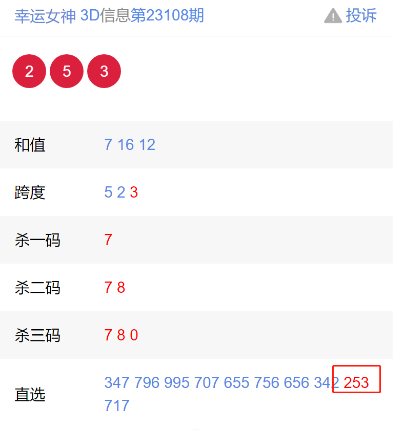 福彩3D上期开奖号码:253【更多福利彩票开奖链接:https://www.weicainet.cn/】