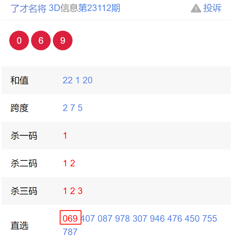 福彩3D上期开奖号码:069【更多福利彩票开奖链接:https://www.weicainet.cn/】