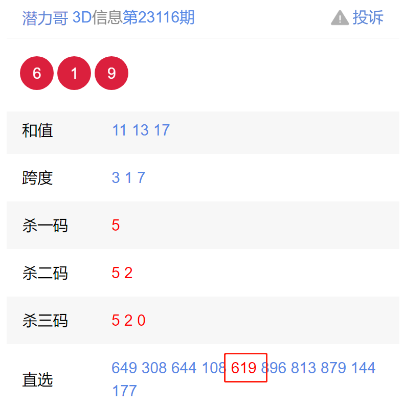 福彩3D上期开奖号码:619【更多福利彩票开奖链接:https://www.weicainet.cn/】