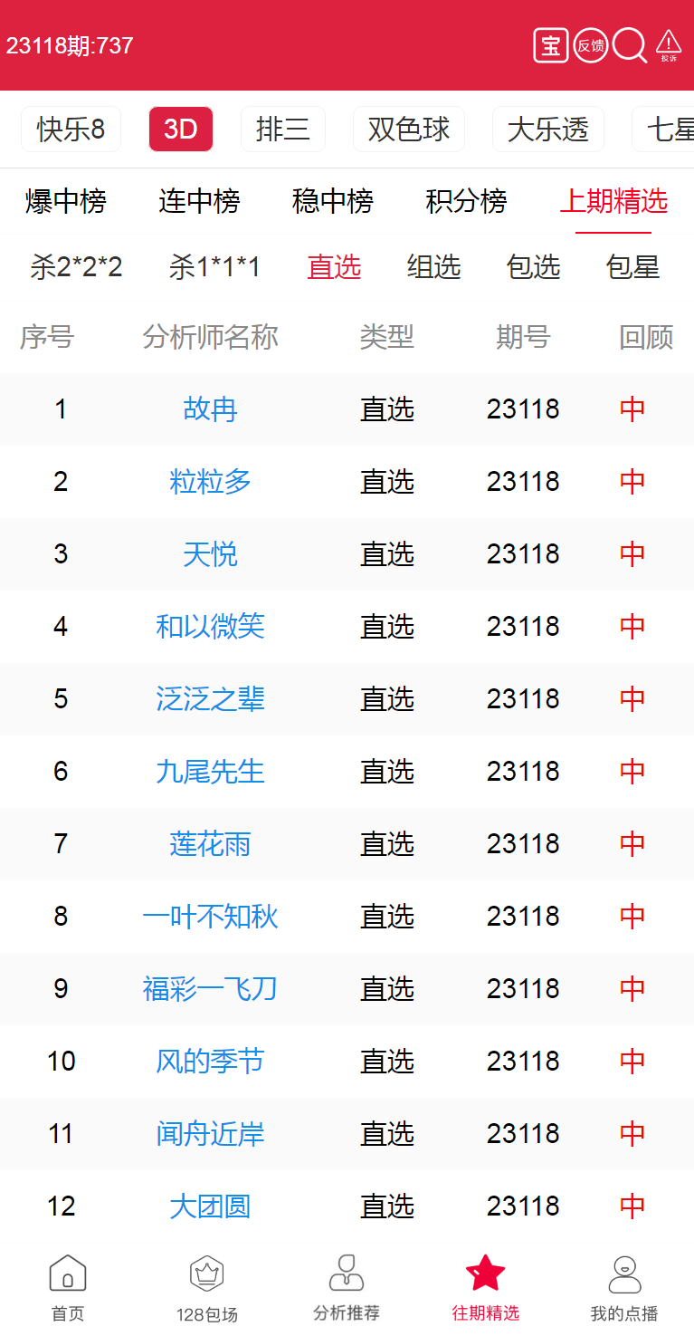 23119期:福彩3D 故冉、粒粒多 等12位老师命中直选!