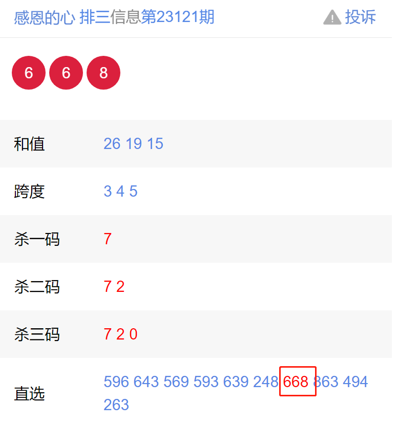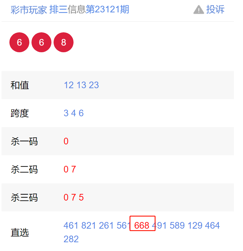 排列三上期开奖号码:668【更多体育彩票开奖链接:https://www.weicainet.cn/】