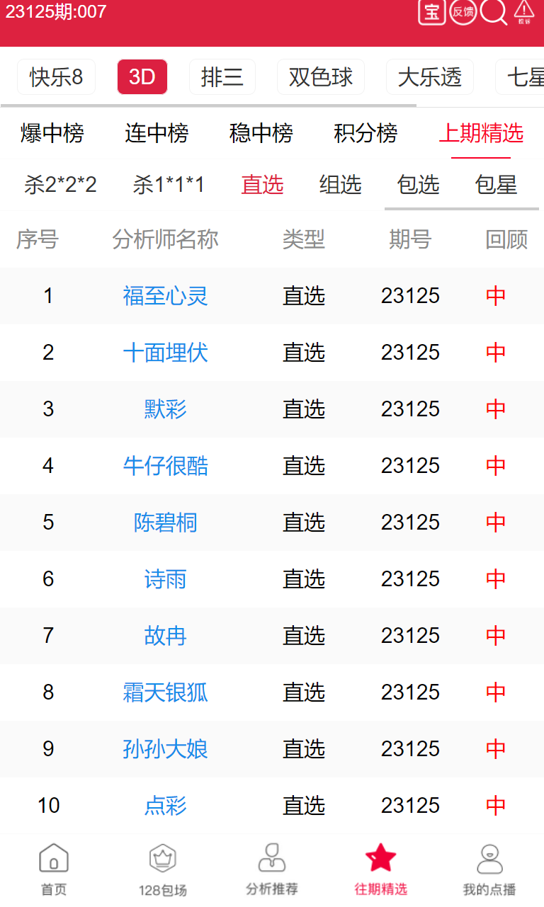 23126期:福彩3D 福至心灵、十面埋伏 等10位老师命中直选!