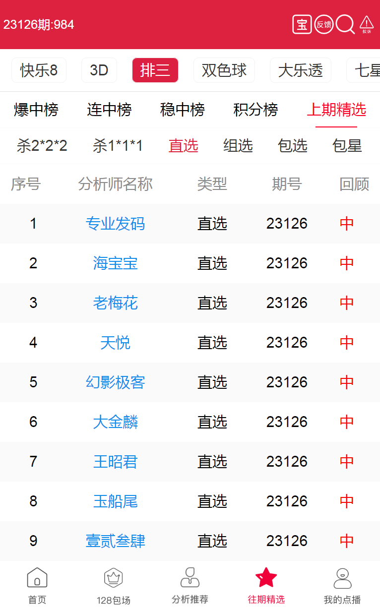 23127期:专业发码、海宝宝 等9位老师直选击中大奖!
