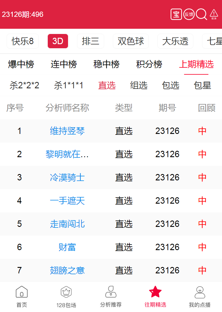23127期:福彩3D 冷漠骑士、一手遮天 等7位老师命中直选!