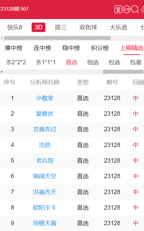 23129期:福彩3D 小教室,爱雅优 等9位老师命中直选!